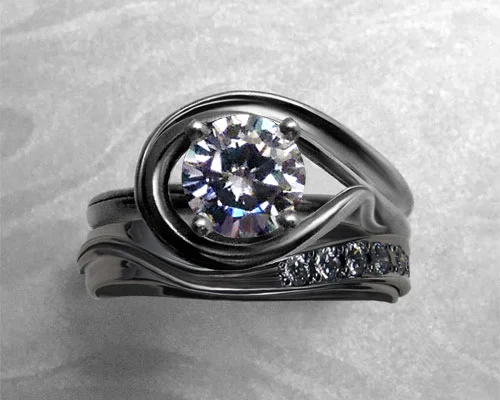 Very Unusual Engagement Ring With Matching Wedding Band 14k White Gold Metamorphosis Jewelry